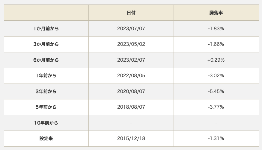 2015年の運用開始依頼、基準価格はマイナスになっています。