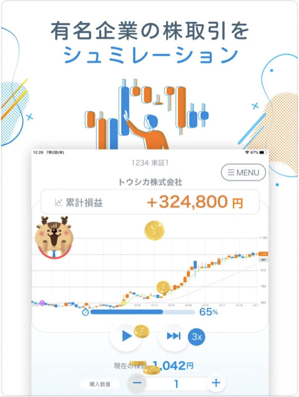 このトウシカは、ゲーム感覚で株取引の練習ができるアプリ。