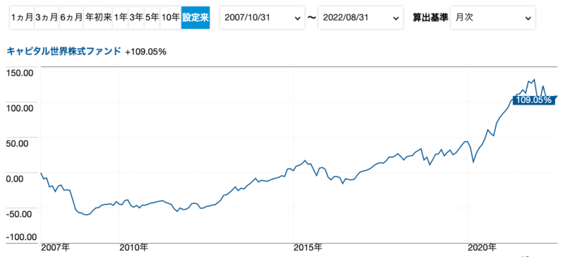 キャピタル全世界株式ファンドが運用を始めた2007年ごろは、全世界株式にまるっと投資できるファンドがほとんどなかったため、このファンドに投資する意義もあったかと思います。
