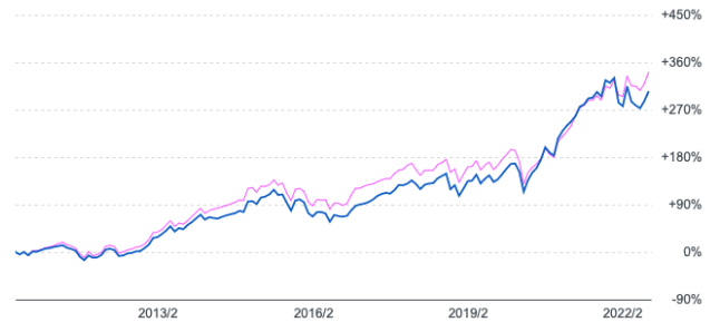 もちろん他のインデックスよりもリターンが大きく上回っていれば、高いコストを支払う価値がありますが、実は類似のインデックスファンドと変わらないです。