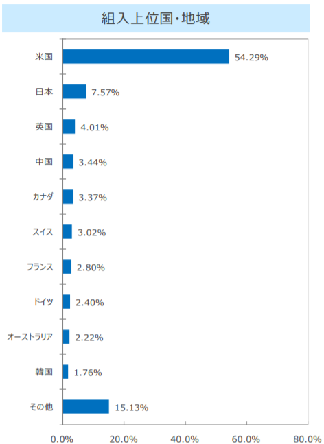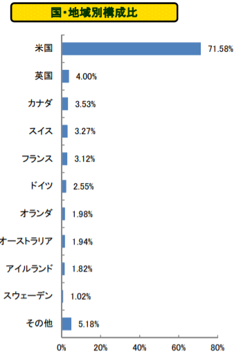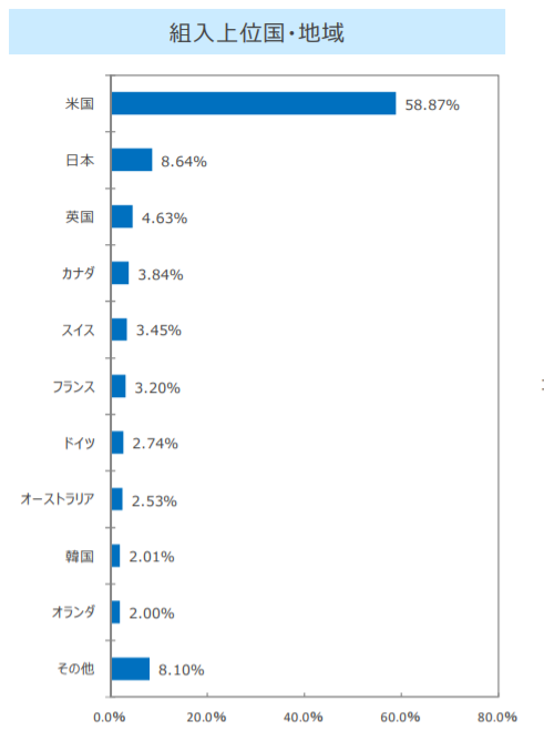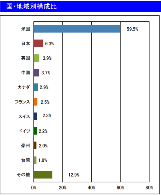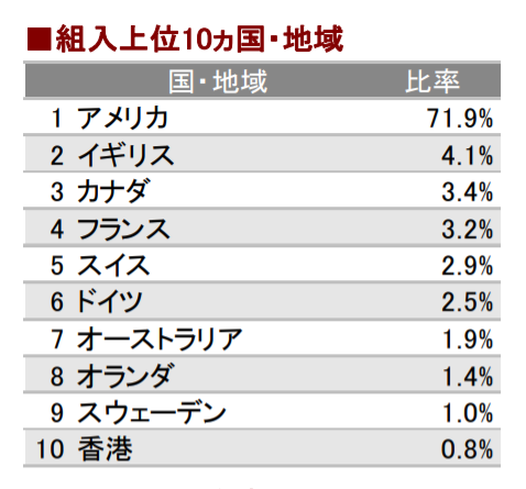 商品によって組み込まれている地域や構成比率は異なりますが、米国株式が大半を占めているものが多いのが特徴です。