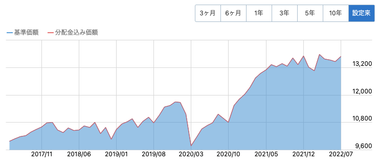 人気の高い投資信託ということもあり、十分な資産規模を持ってますね。