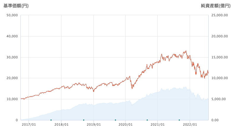 2016年の9月に設立された比較的新しいファンドですが、 純資産総額が既に5000億円を超えている大人気ファンドとなっています。