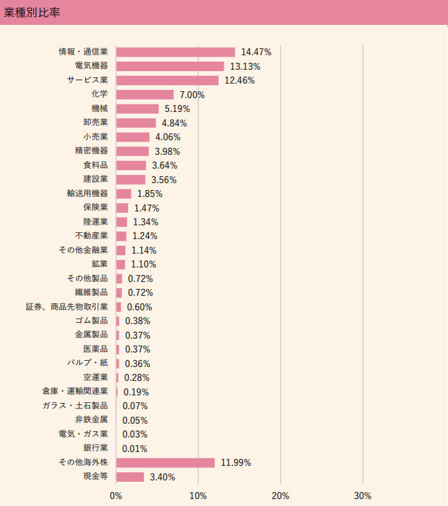 その他、海外株にも1割ほど振り分けられていることがわかりますね。