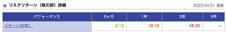 これまでの年率リターンは以下のとおり(2022年4月1日現在)。