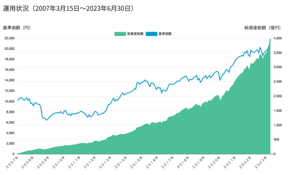 つみたてNISAの対象商品になっていることもあり、純資産総額が1000億円を超えている大人気ファンドとなっています。