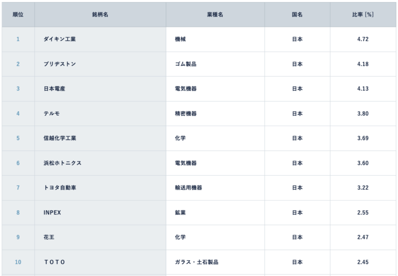 日本電産やダイキン工業など、日本を代表する銘柄が並んでいるのがわかります。