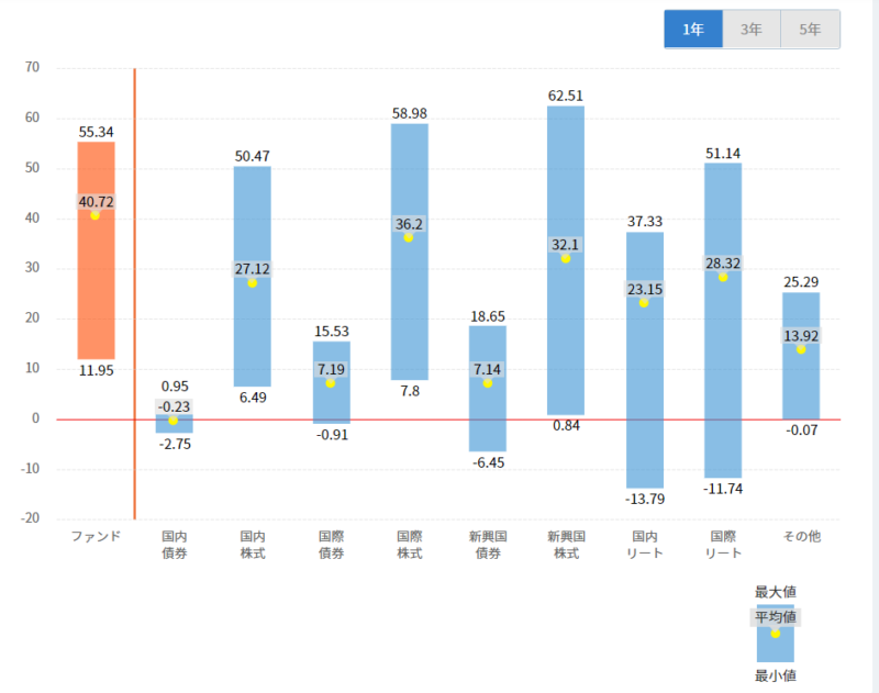 平均値と最低値が各アセットの中で最も高く、最大値も上から3番目であることが分かります。