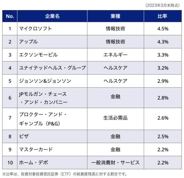 構成銘柄上位10社を見ても、日本でもおなじみの企業ばかりです。