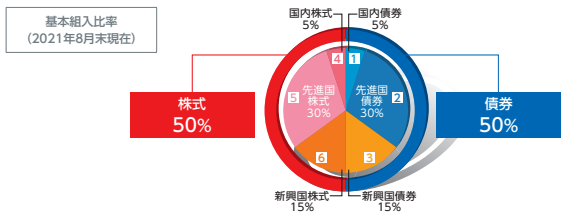 通常時は、株式と債券の割合が50%になっていて、景気の変化による価格変動を抑制することができます。