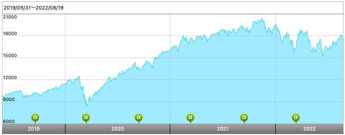 基準価格も過去3年で5000円以上上昇していることを考えると、まずまずの利回りと言って良いかと思います。